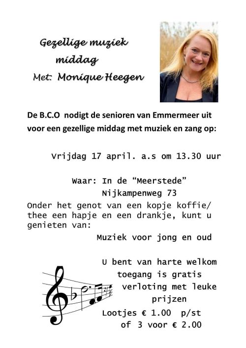 Heb je ook nieuws voor de bewoners van Emmermeer, dan kun je het mailen via de knop e-mail zodat ik het kan plaatsen. Ook foto's van uw activiteit kun je via deze knop sturen --------------------------------------------------------------------------------------------------